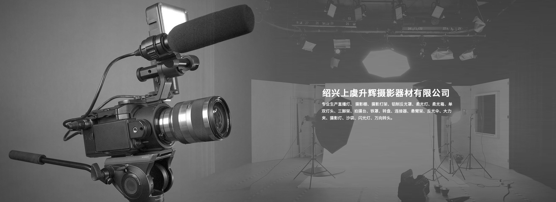 紹興上虞升輝攝影器材有限公司專業生產直播燈、 攝影棚、攝影燈架、鋁制反光罩、柔光燈、柔光箱、單雙燈頭、三腳架、拍攝臺、鐵罩、轉盤、連接器、懸臂架、反光傘、大力夾、攝影燈、沙袋、閃光燈、萬向轉頭。